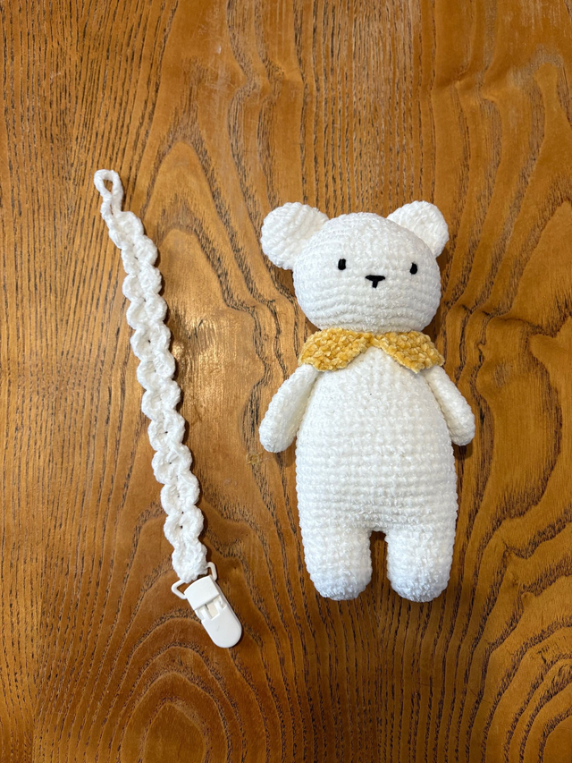 Offrez un cadeau de naissance tendre et poétique avec notre Coffret Ours Polaire, entièrement crocheté à la main. Il réunit une grande peluche ours polaire, un hochet oreilles d’ours et une attache-tétine ondulation pour accompagner bébé en douceur.